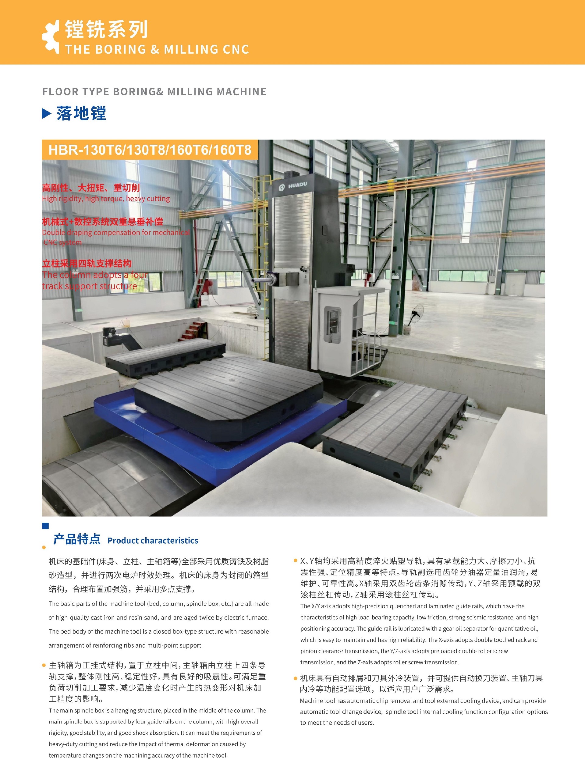 機床的基礎件(床身、立柱、主軸箱等)全部采用優質鑄鐵及樹脂砂造型,并進行兩次電爐時效處理。機床的床身為封閉的箱型結構,合理布置加強筋,并采用多點支承方式;震性強,定位精度高特點。導軌副選用齒輪分油器定量油潤滑,易維護,可靠性高。X軸采用雙齒輪齒條消隙傳動,Y、Z軸采用預載的滾珠絲桿傳動;主軸箱為側掛式結構,置于立柱一側,整體剛性高、穩定性好,具有良好的吸震性。可滿足重負荷切削加工要求,減少溫度變化時產生的熱變形對機床加工精度影響;機床具有自動排屑和刀具外冷裝置,并可提供自動換刀裝置、自動更換附件、主軸刀具內冷等功能配置選項,以適應用戶廣泛需求